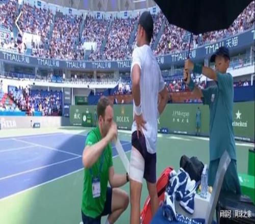 第十一局吳易昺在救一個(gè)小球時(shí),可能是用力過(guò)猛拉傷了左大腿,進(jìn)入局休后中國(guó)一哥就叫了醫(yī)療暫停。