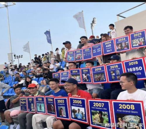 一眾球迷們將德約幾乎每年當中的重要時刻都選取出一個,制成海報帶到了賽場上。那么都有哪些呢?讓我們一探究竟。