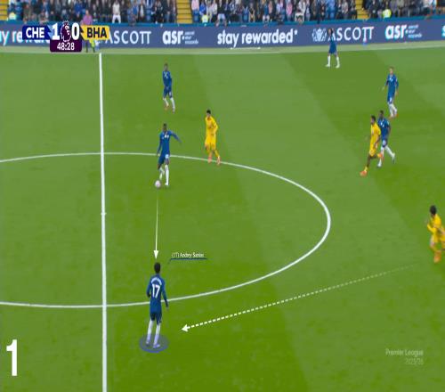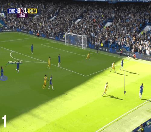 桑托斯的大力射門讓三笘薫有機會傳球給迭戈-戈麥斯,查洛巴別無選擇,只能在戈麥斯射門之前嘗試攔截。不出所料,他未能成功,被罰下場。
