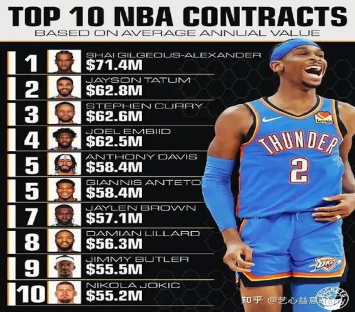 咱們先來看一下NBA現在年薪的前十。