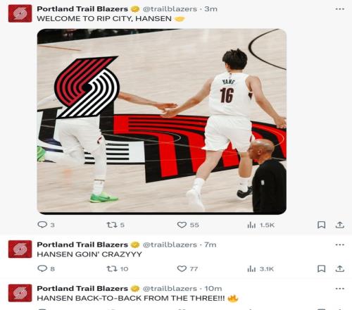激動了!開拓者官方社媒連發(fā)三條動態(tài):連進(jìn)三球,瘋狂的瀚森 雷速體育 2025-10-11 13:02:24 雷速體育10月11報(bào)道 NBA季前賽繼續(xù)進(jìn)行,開拓者主場迎戰(zhàn)國王。楊瀚森在第三節(jié)發(fā)力,短時(shí)間內(nèi)連得8分,開拓者官方社媒也是非常激動,連續(xù)更新三條動態(tài),并寫道:楊瀚森連進(jìn)3球、瘋狂的瀚森、歡迎來到撕裂之城。 瘋狂免費(fèi)觀看_社媒免費(fèi)觀看_楊瀚森免費(fèi)觀看_瘋狂高清在線_社媒高清在線_楊瀚森高清在線 瘋狂 社媒 楊瀚森 NBA 波特蘭開拓者隊(duì) 上一篇: 得到認(rèn)可!開拓者官方賬號連發(fā)7個(gè)與楊瀚森相關(guān)的推文 下一篇: 文班半場22分哈珀9分3助馬刺加時(shí)勝爵士