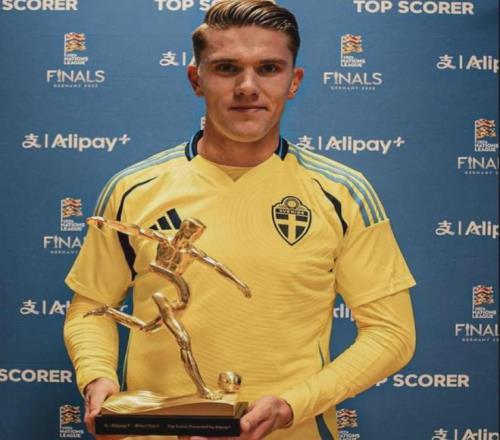 哲凱賴什領取了2024-25賽季歐國聯金靴獎,這名前鋒打進了15球。