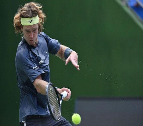 10月4日,上海大師賽,盧布列夫擊球時甩出汗水。(圖/視覺中國)
