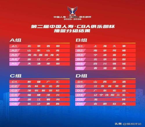 北京時間10月17日,根據CBA官方的公示了第二屆CBA俱樂部杯小組賽分組抽簽結果。